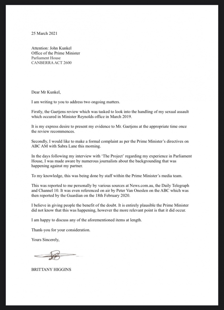Ms Higgins’ letter puts further pressure on Mr Morrison to further investigate the claims of backgrounding by his staff, after days of shrugging off similar questions from Labor.