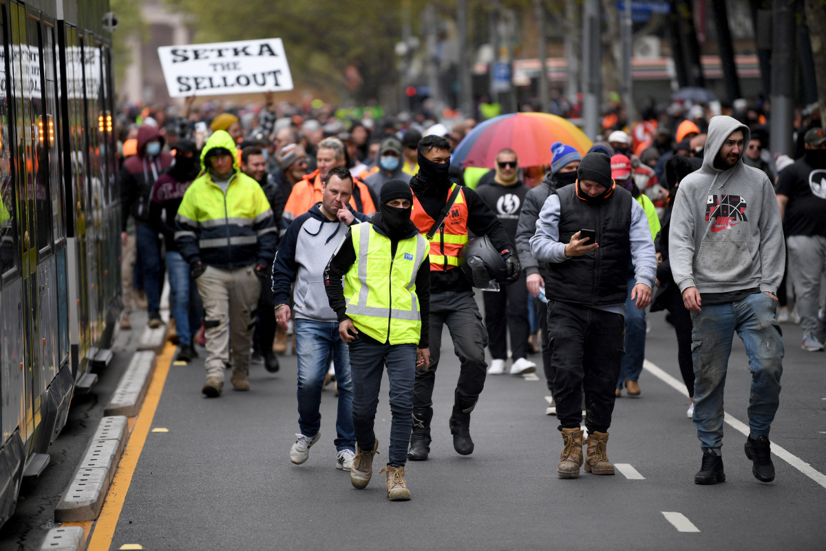 Union leaders and Labor politicians distanced themselves from the bulk of the protesters, blaming the damage and disruption on far-right activists who promoted the rally online.