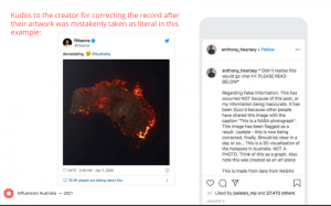 The toolkit flagged an example of singer Rihanna posting a doctored photo that vastly overestimated the size of Australia’s ‘black summer’ bushfires in 2020.
