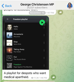 On Wednesday night, as criticism of his speech swirled, Mr Christensen posted video of the address to Telegram. He wrote “yes, I called for civil disobedience in the parliament today”.
