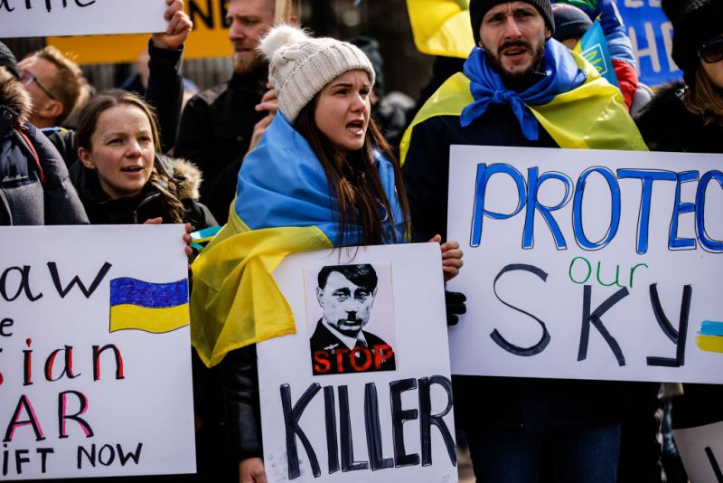 Hundreds of people demonstrated in the square in front of the United Nations headquarters in Geneva, carrying signs such “Make Ukraine a member of NATO now” and “Say no to Putin”.