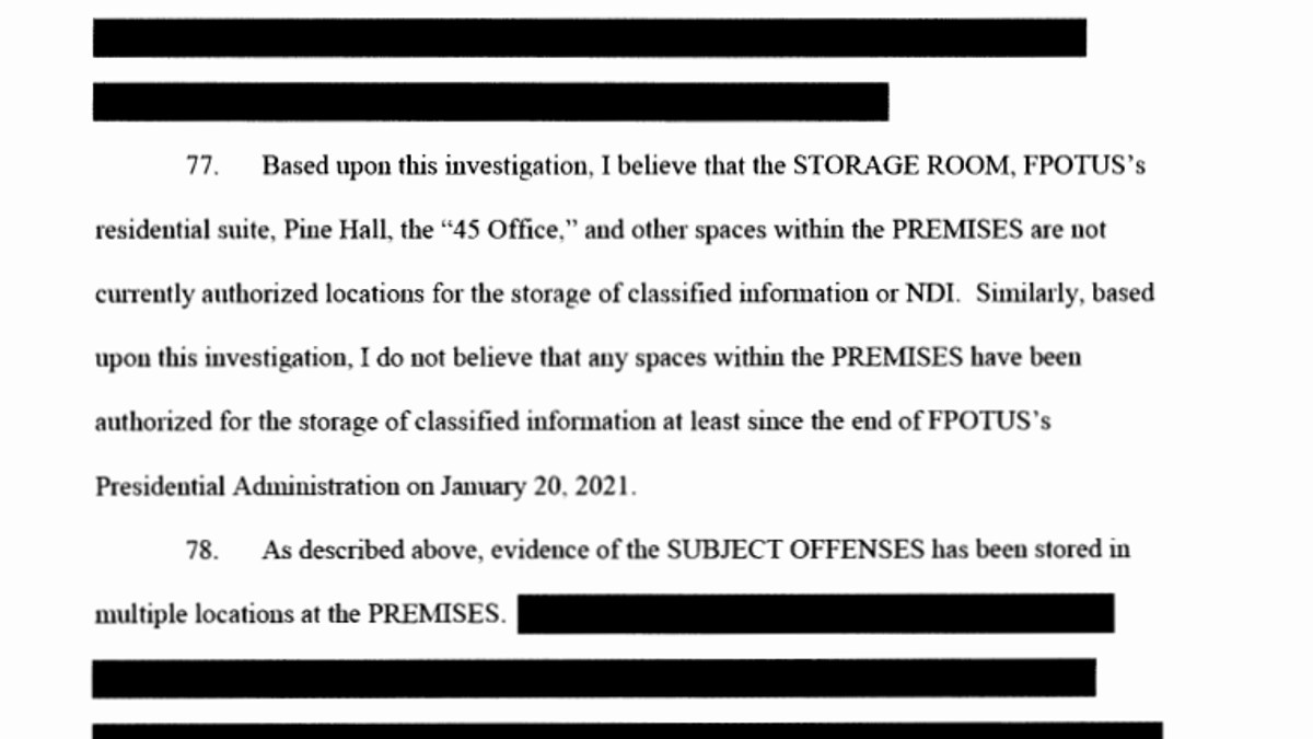 “As such, it appears that since the time classified documents were removed from the secure facilities at the White House and moved to Mar-a-Lago on or around Januaiy 20, 2021, they have not been handled in an appropriate manner or stored in an appropriate location.