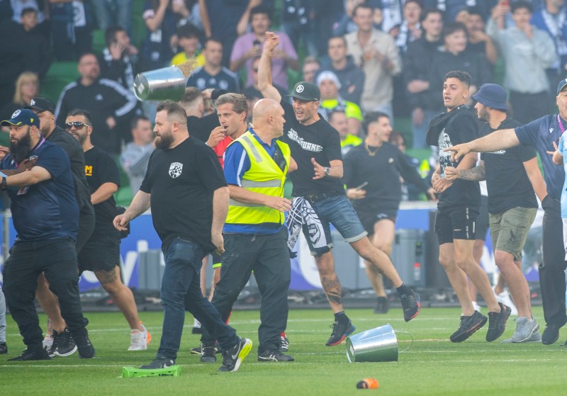 Many called for life bans to be slapped on fans from Melbourne Victory’s active area who stormed the AAMI Park pitch on Saturday night, injuring Melbourne City goalkeeper Tom Glover and referee Alex King with a metal bucket.