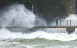 Waves crash against the cliffs at an Auckland beach as a cyclone hits the upper parts of New Zealand, on Sunday. Photo: AP/NZ Herald