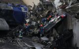 The passenger train carrying 350 people and cargo train were travelling on the same tracks in central Greece when they crashed, throwing entire carriages off the line.
