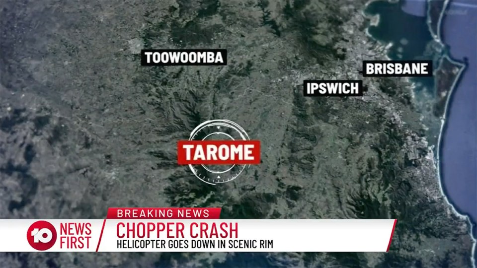 The helicopter was collecting water to fight a blaze when the crash happened at a private property at Tarome in the Scenic Rim before 3pm on Wednesday.