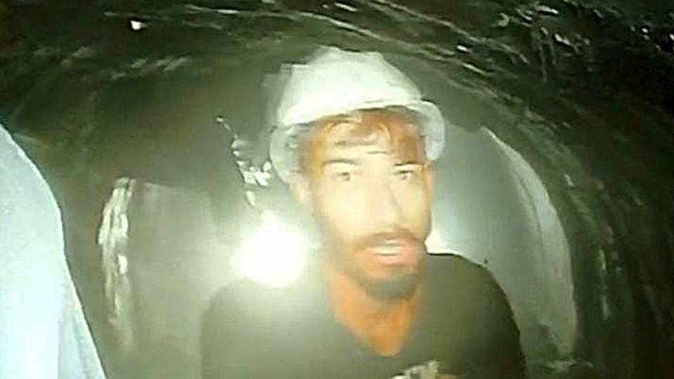 First images from within the tunnel showed workers in white and yellow hard hats standing in the confined space and communicating with rescuers on Tuesday, after a medical endoscopy camera was pushed through a smaller pipeline.