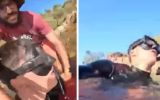 In the footage, the sea can be seen turning a foreboding shade of red as Matteo screams and thrashes while losing a lot of blood.
