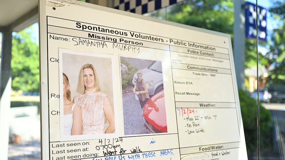 “And just for a community like Ballarat, big hearts, very, very big hearts, and we just hope very much that there’s a positive outcome for Samantha Murphy and her family.”