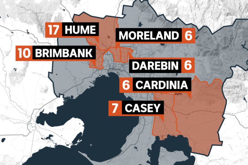 The Australian Health Protection Principal Committee has identified the municipalities of Hume, Casey, Brimbank, Moreland, Cardinia and Darebin – home to more than a million people – as coronavirus hotspots.