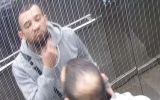 He is seen sneezing several times inside the lift.