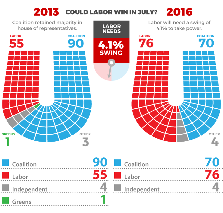 The coalition government currently holds 90 seats in the 150-seat House of Representatives while Labor has 55.