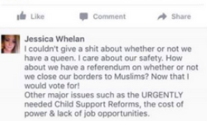 Fresh anti-Muslim posts emerged late on Thursday, in which Ms Whelan calling for debate on closing Australia’s borders to Muslims. Ms Whelan has only denied authorship of a single anti-Muslim post to date.
