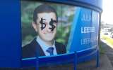 Vandals used marker pens to draw moustaches, devil horns and the words “right-wing fascist” on the Treasurer’s posters in his Melbourne seat of Kooyong. Further Nazi imagery was painted onto a large billboard.