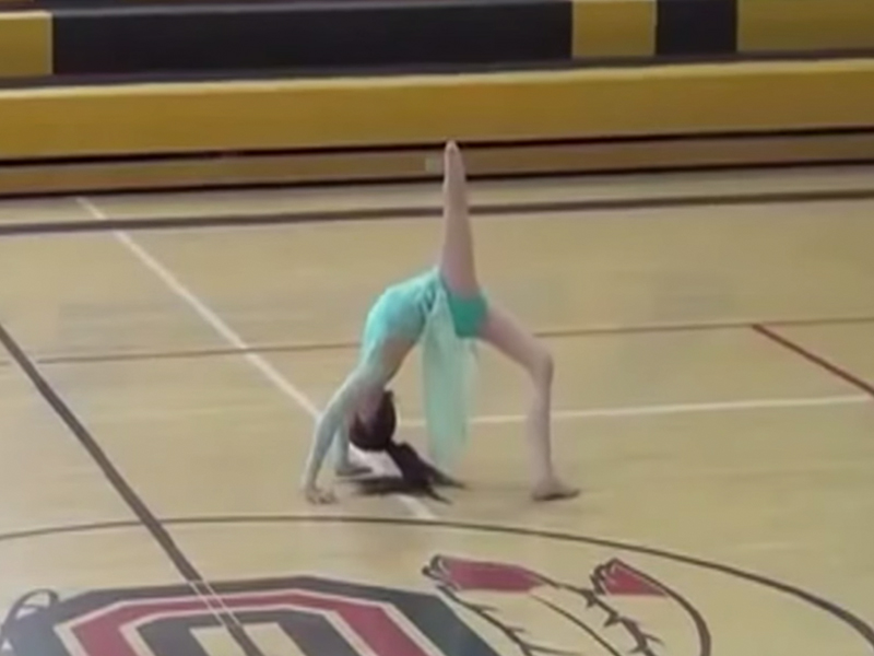 Half way through the routine the young girl from Utah daringly removes her orthopaedic limb and completes the routine using only one leg, showing not only her impeccable balance but also just how brave she is.