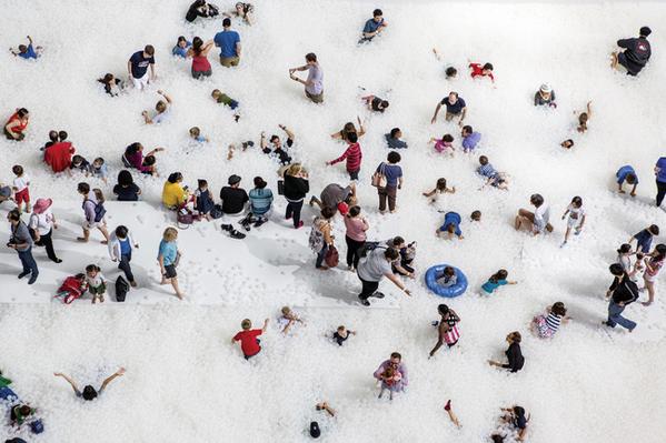 Reviews of the installation have been overwhelmingly positive and the brilliant photography coming from inside the museum shows hundreds of fully grown humans embracing the exuberance of their former selves in public.