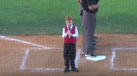 As the backing music began, Ethan, in a shiny red vest and black pants, was heard taking a deep breath before launching into Advance Australia Fair.