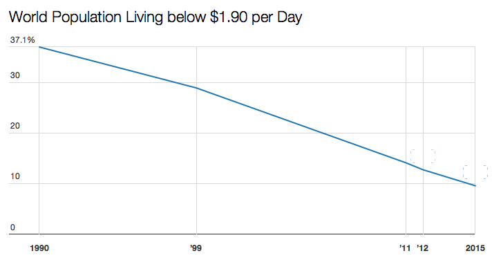 The World Bank estimated that the proportion of the global population living in “extreme poverty” fell to 9.6 per cent.