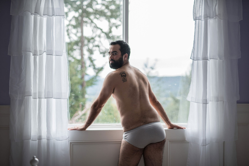 Since dubbed a ‘dudeoir’ (instead of ‘boudoir’) photo shoot, the result was a compilation of come-hither poses featuring good-sport Mr Williams, who unlike most lingerie models, is covered in thick black hair.