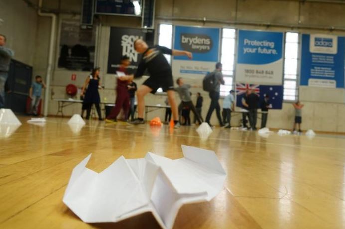 There are few activities that can tempt school children to put down their phones, but a paper plane competition in Sydney seems to be one of them.
