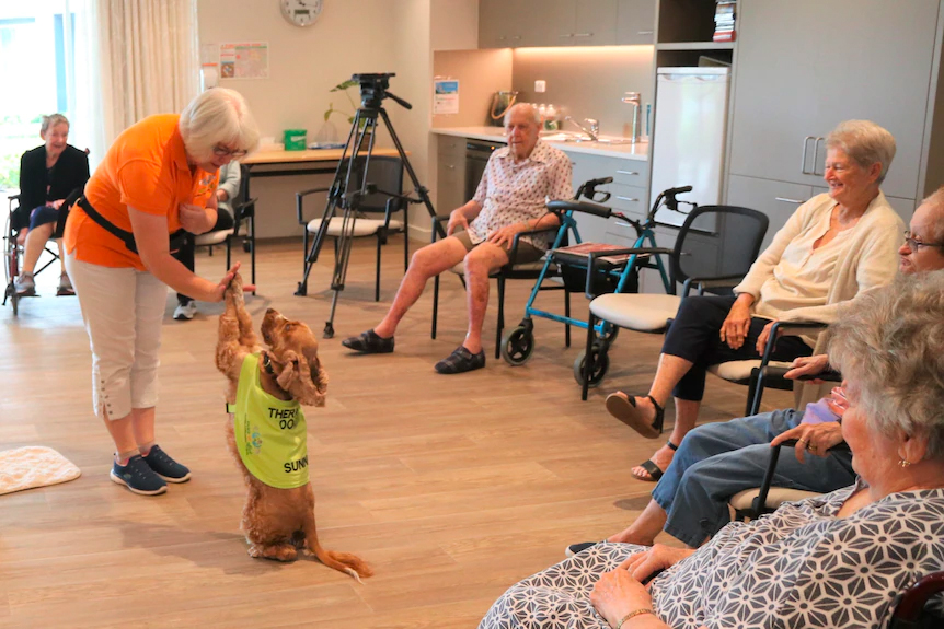 Once a week, a friendly spaniel named Sunni visits residents at an aged-care facility in the city, including those in the secure dementia wing.