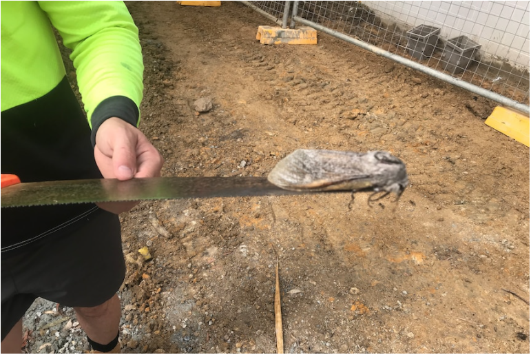 Builders at Mount Cotton State School discovered the giant wood moth on the building site of new classrooms at the school.