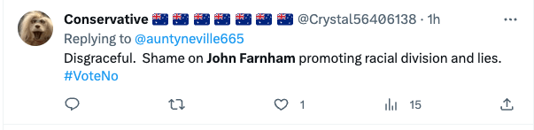 “Have lost any respect I had for Farnham. Total cop out. This song used to mean a lot to Australians. Now I hate it. Regardless, it won’t sway me. Still voting NO!” wrote one Facebook user.