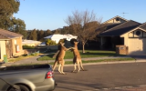 In a scene straight out of a stereotype, two kangaroos have been filmed boxing in a suburban street.