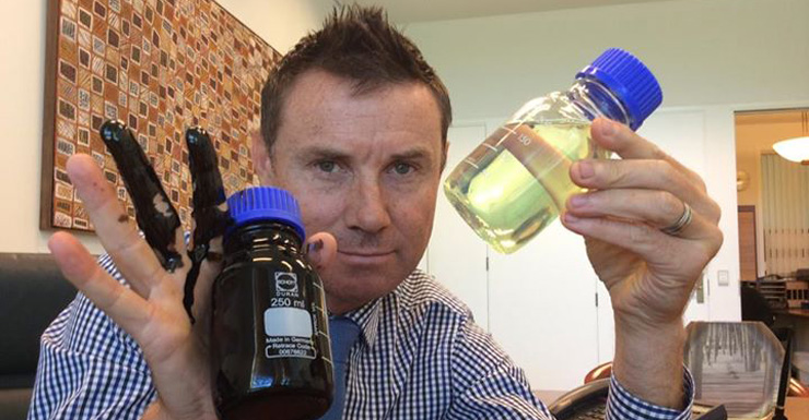 The “black stuff” to which Mr Laming referred was high-sulphur diesel, which he showed to the parliament by spilling the ooze onto his hand, his desk and the floor of the chamber.