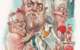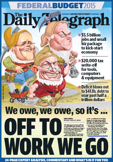 Sydney’s The Daily Telegraph had Joe Hockey, Tony Abbott and Scott Morrison channelling Snow White’s seven dwarfs: