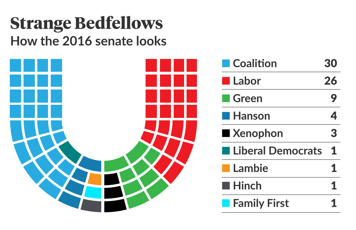 Labor will have 26 senators, but the balance of power will rest with 20 senators not aligned to the major parties (see the graphic below for the final results).