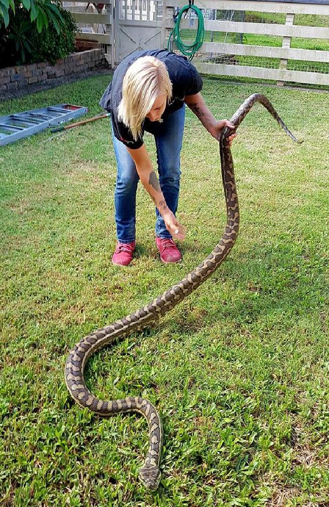 One python caught in the Gold Coast hinterland suburb of Clagiraba measured more than three metres long – one of the biggest Mr Harrison said he had seen in 25 years.