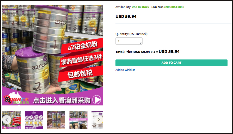 Various e-commerce sites advertise the sale of A2 formula to Chinese buyers.