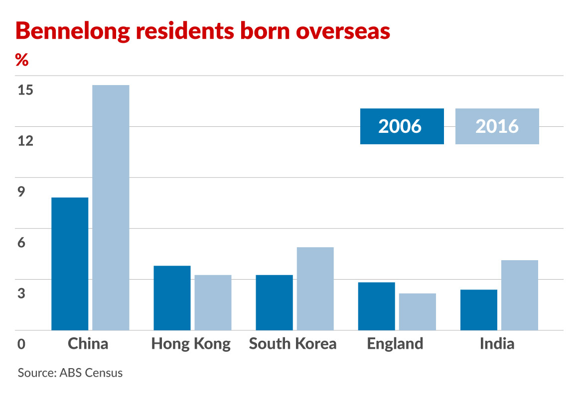 More Bennelong residents describe their ancestry as Chinese than Australian or English. In total, 51.7 per cent were born overseas.