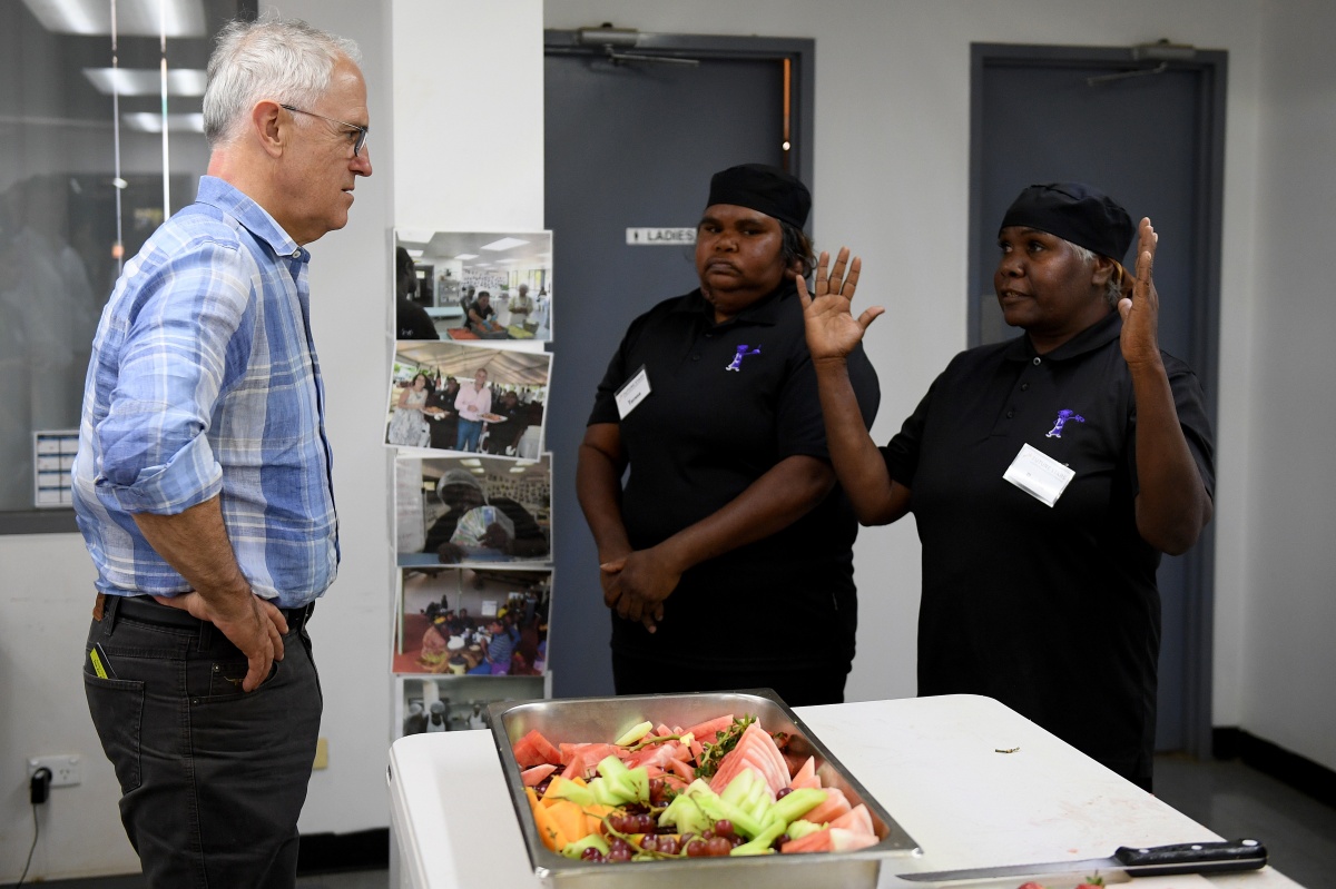 The grandmother of nine, with a 10th grandchild on the way, met Prime Minister Malcolm Turnbull on Sunday, showing him where she works at the Future Stars indigenous employment program.