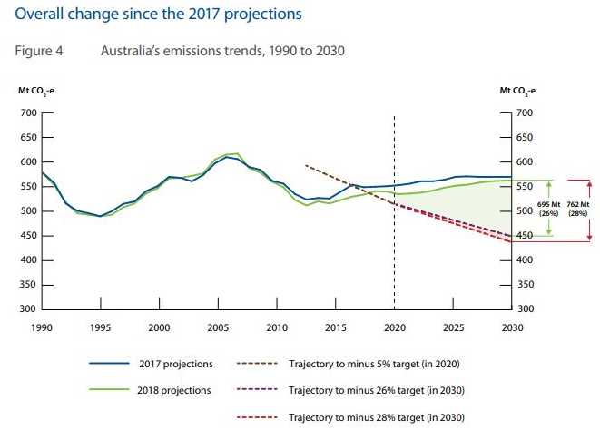 But the latest carbon emissions projections, released by the Department of Environment and Energy, predict Australia will only reduce its carbon emissions by 7 per cent by 2030 – well short of the target.