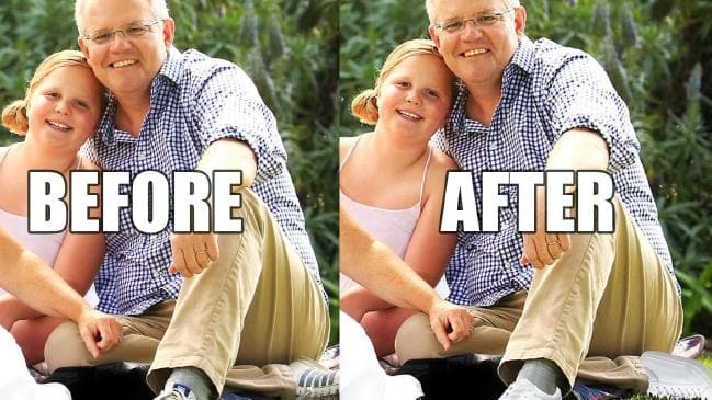 “Message to my Department (PM&C): I didn’t ask for the shoeshine, but if you must Photoshop, please focus on the hair (lack thereof), not the feet!,” the PM said on Twitter.