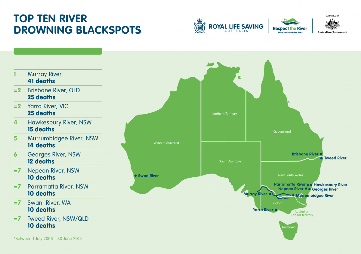 The worst spot for drowning deaths is the Murray River, along the border of Victoria and New South Wales, as shown by research released by Royal Life Saving Australia.
