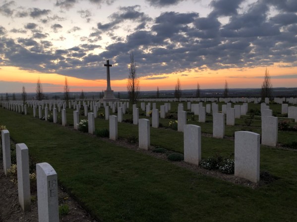 The effect is to burden the mind with thoughts of what lies beyond on the hill, where previously the focus was on the rows of neatly tended graves.