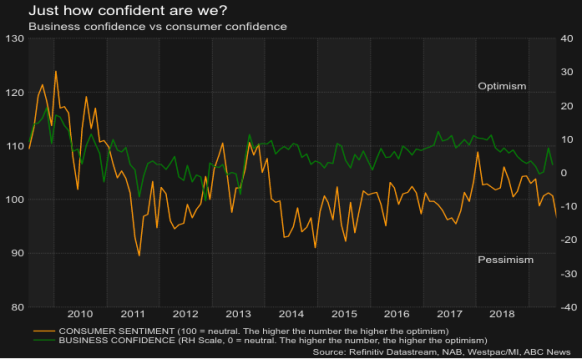 “The fall in sentiment this month is troubling as it comes against what should have been a supportive backdrop for confidence,” Westpac’s Matthew Hassan said.