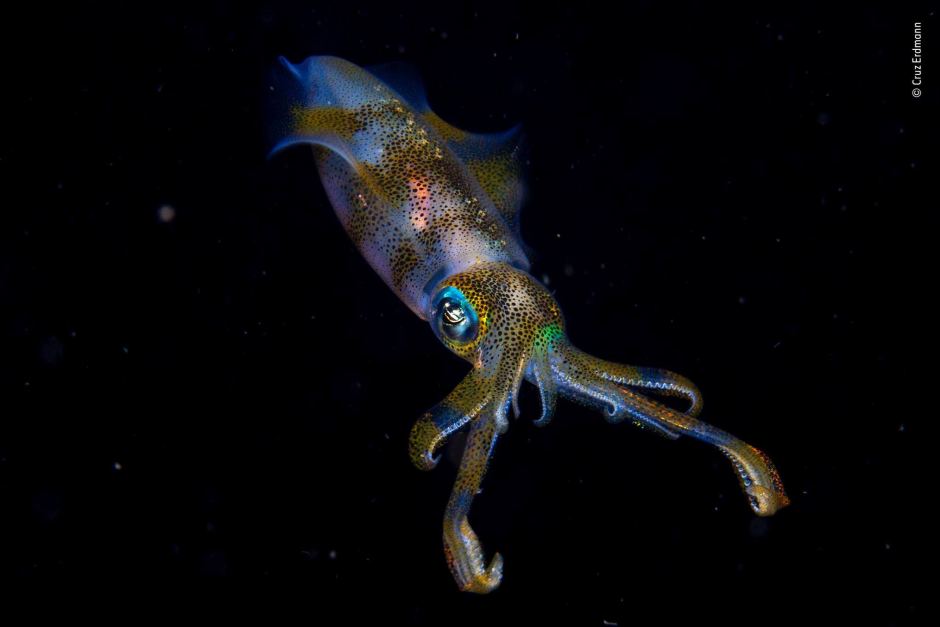 Budding New Zealand photographer Cruz Erdmann, 14, took home the award for Young Wildlife Photographer of the Year with Night Glow, his photo of a big fin reef squid captured during a dive in the Lembeh Strait near Indonesia.