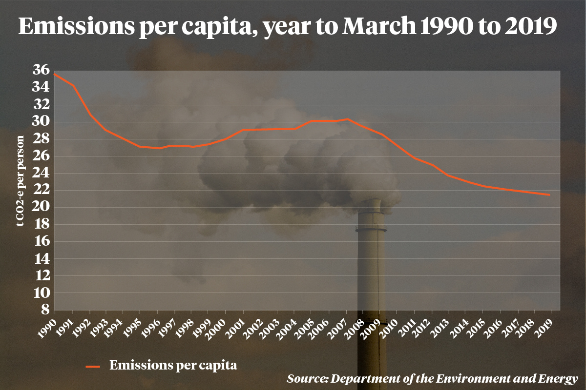 The only way the government can try to claim the billions it’s blowing on “direct action” are achieving something is by cherry-picking the per capita CO2 emissions figure, as the Department of Environment and Energy dutifully highlights in its quarterly national greenhouse accounts.