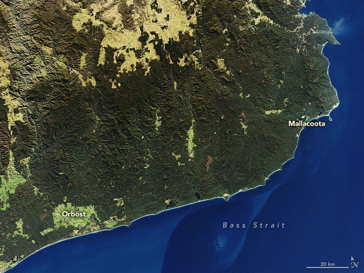 If you thought the smoke gripping major cities was intense, satellite imagery showed just how dense the smoke haze is from dozens of out-of-control blazes on the south-east tip of the mainland, choking coastal communities.