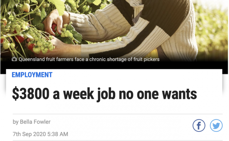 In September he saw a news headline touting a ‘$3800 a week job no one wants’ picking fruit and decided to follow it up.