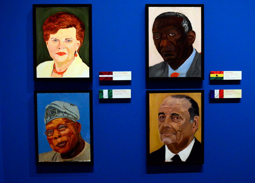 Clockwise from top left: Former Latvian President Vaira Vike-Freiberga, former Ghana President John Kufour, former French President Jacques Chirac and former Nigerian President Olusegun Obasanjo.