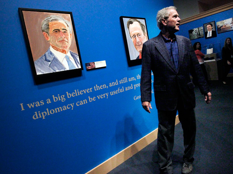 George W. Bush at his exhibition, "The Art of Leadership: A President's Personal Diplomacy".