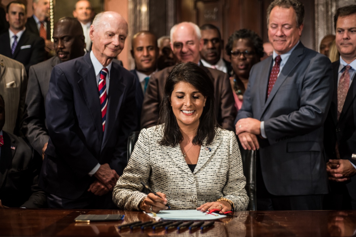 Ms Haley currently resides in the Governor’s Mansion in Columbia, South Carolina, with her husband Michael, her daughter Rena, her son Nalin and their dog Bentley.