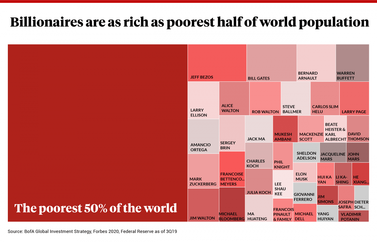 His latest spray highlights a Bank of America report that the world’s 41 richest billionaires have as much wealth as the poorest 50 per cent of our planet.
