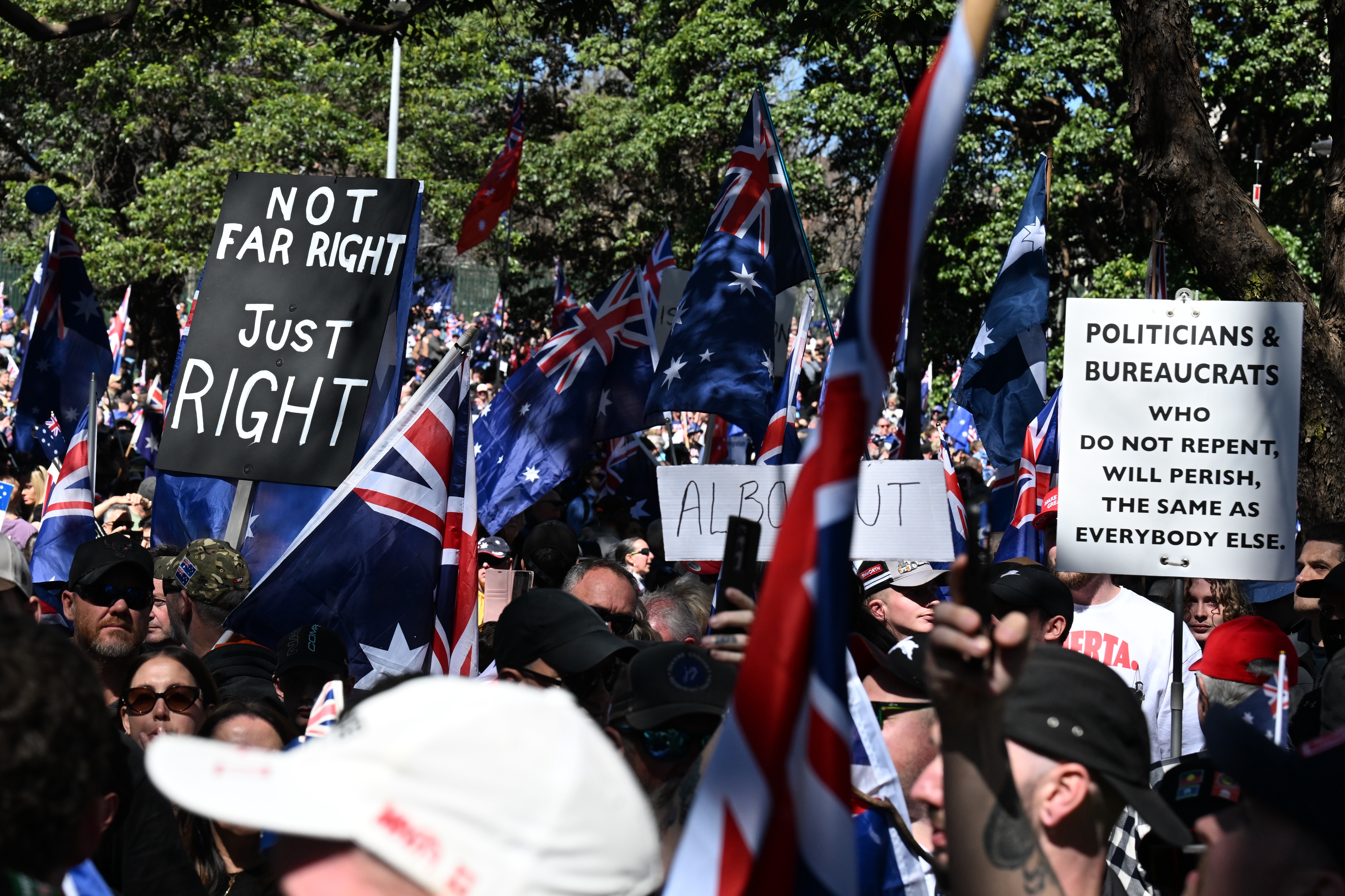 Protesters during the March for Australia anti-immigration rally in Sydney