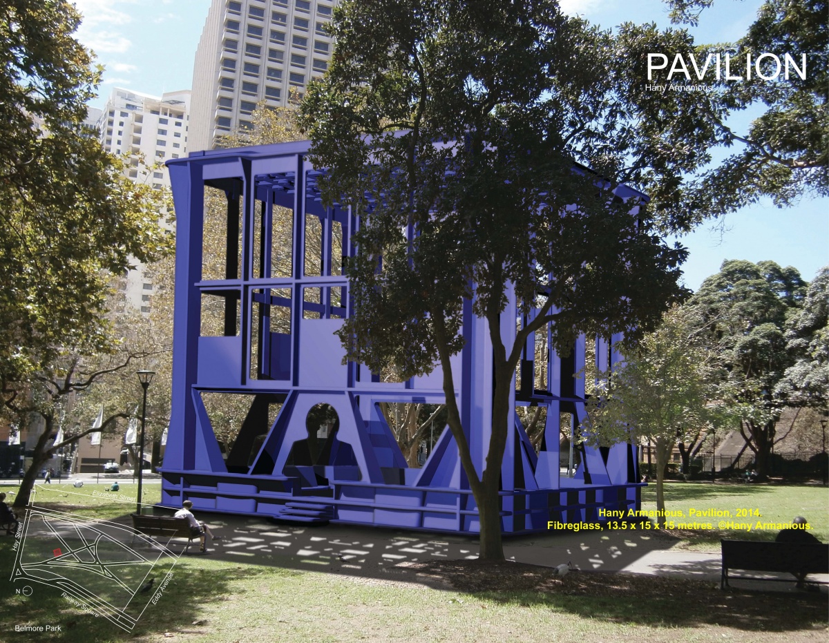 A $2.5m pavilion by Hany Armanious, that has already been dubbed the Milk Crate, will stand in Belmore Park near Central Railway Station.